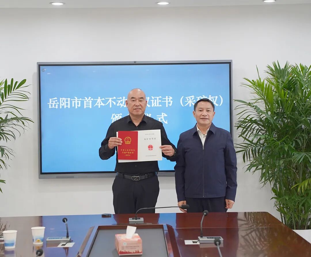 岳阳市首本采矿权不动产权证颁发 正式告别“一证载两权”历史!