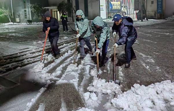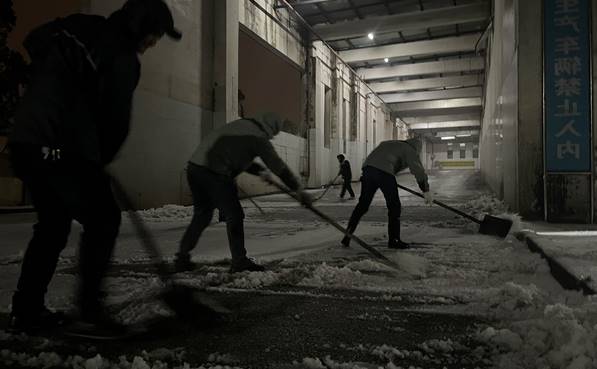 当晚,在市花果畈垃圾中转站至107国道岔路口,该所组织人员抛洒2吨多融冰剂,确保结冰路面及时“破冰”,保障次日道路安全畅通。3日晚上,全城大面积降雪,气温持续下降,该所20多名安全应急队员分成三组,严阵以待,通宵应战,在进出站道路、办公庭院等区域,以人工和机械相结合的方式,每3小时进行一次铲雪除冰,确保路见本色。4日至5日,该所发扬以苦为乐、连续作战的优良作风,在大力清理道路残余积雪的同时,还将进站道路两侧被积雪压断的残枝断木及时清理干净,坚决保障进出站垃圾中转车辆正常通行安全,牢牢守住安全生产防线。