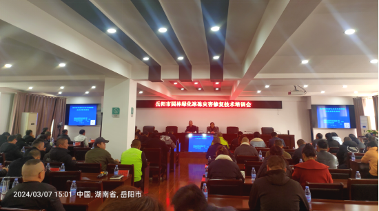 3月7日,岳阳市园林绿化冰冻灾害修复技术培训会召开,参加培训的有市、县(市、区)两级园林绿化主管部门,各景区、公园、广场管理中心和养护服务单位的业务骨干和一线技术人员。市城管局党组书记、局长杜宇出席培训会,市城管局三级调研员孔学文主持培训会。