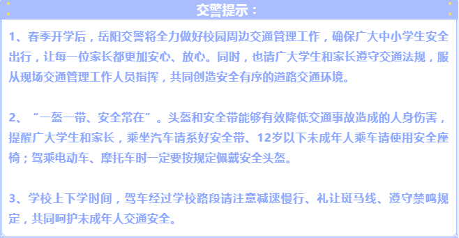 开学首日,岳阳交警走进校园开展交通安全第一课,为师生讲解交通安全常识,促使学生进一步熟悉和掌握相应的交通安全法律常识。