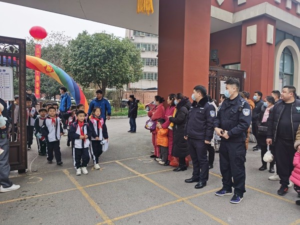 2月16日,全区中小学新学期开学的第一天。各派出所认真落实常态化“护学岗”勤务机制,在学生放学集中出行时段增加警力,提前到岗到位,加强校园周边环境巡逻,密切关注校园周边的可疑人员、车辆,切实为学生平安上下学提供了强有力的保障。早上7时许,王家河等派出所值守民警均着装规范到岗到位,积极协助学校开展门岗安防、入校检查、车流人流引导,劝导警示师生、家长做好疫情防控,组织学生分流入校,确保不出现扎堆聚集现象。金鹗山等派出所安排警力在各校全面开展校园安全大检查和隐患大排查,排查校园内部安防建设,加强学校安保人员排查工作,消除可能影响校园安全稳定的一切苗头。岳阳楼等派出所加大校园周边环境治理,对校园周边网吧、旅馆、大小商店、午托中心等场所开展安全大排查。东茅岭等派出所应邀参加学校开学典礼,民警现场开展法制宣传教育,得到了广大师生及家长的称赞。
