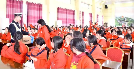 活动中,岳阳交警南湖大队民警通过播放视频案例、讲解法律法规等方式,从行走安全、乘车安全、骑车安全三个方面向在场学生宣讲交通安全知识。同学们在轻松愉快的有奖问答活动中,消化知识、活学活用,增强了交通安全意识。