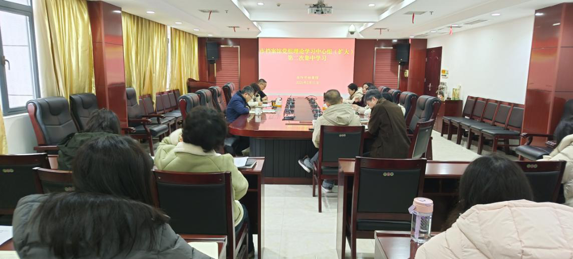 2026年2月11日上午,岳阳市档案馆召开党组理论学习中心组(扩大)第二次集中学习暨春节安全与廉政工作部署会议,馆党组书记、馆长张莉主持会议并讲话,全馆干部职工参加。