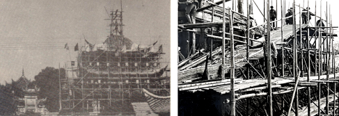 1983至1984年,岳阳楼大修,工人研究榫卯结构