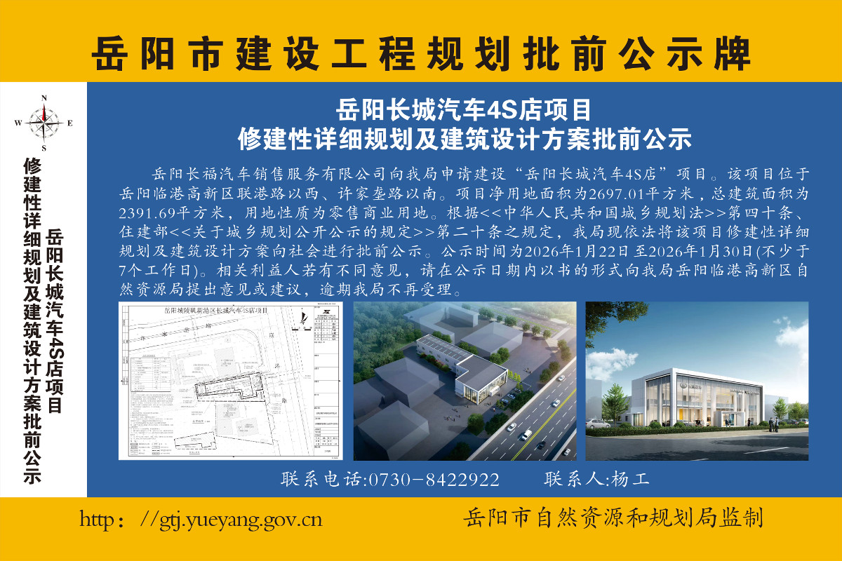 岳阳长城汽车4S店项目修建性详细规划及建筑设计方案批前公示