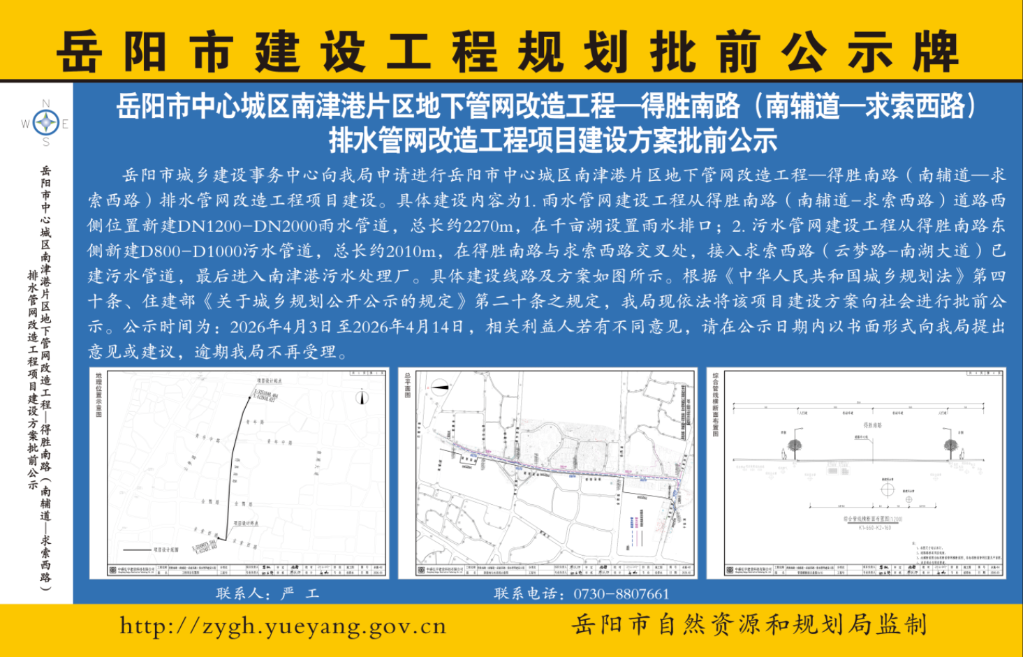 岳阳市中心城区南津港片区地下管网改造工程——得胜南路(南辅道—求索西路)排水管网改造工程项目建设方案批前公示