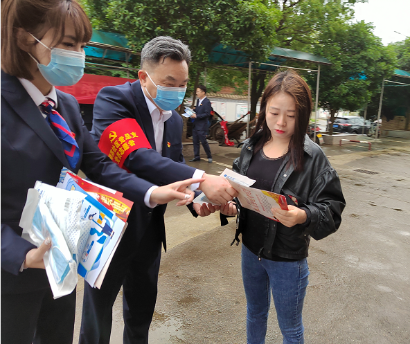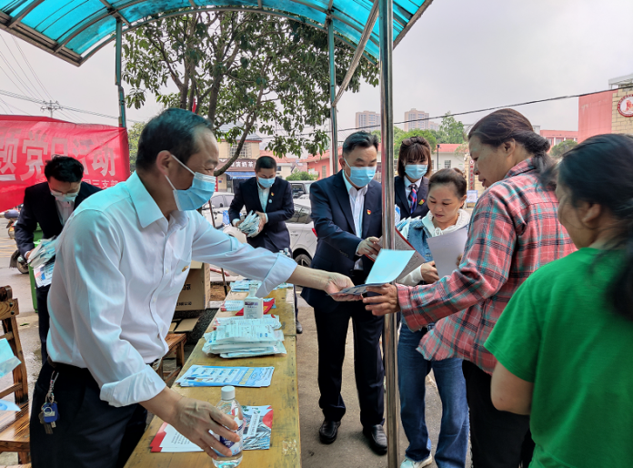 活动中,党员们积极参与,通过悬挂横幅、发放宣传单、现场解答等方式进行普法宣传,对现场咨询法律相关事务的群众进行耐心解答,提醒居民在日常生活中要不断提高法律意识和防诈骗意识。随后,向周边居民免费提供了医用口罩、医用酒精等防疫物资,发放了疫情防控宣传单,提醒他们戴好口罩,做好个人疫情防护。本次主题党日活动共发放口罩两千余个、宣传单三百余张。