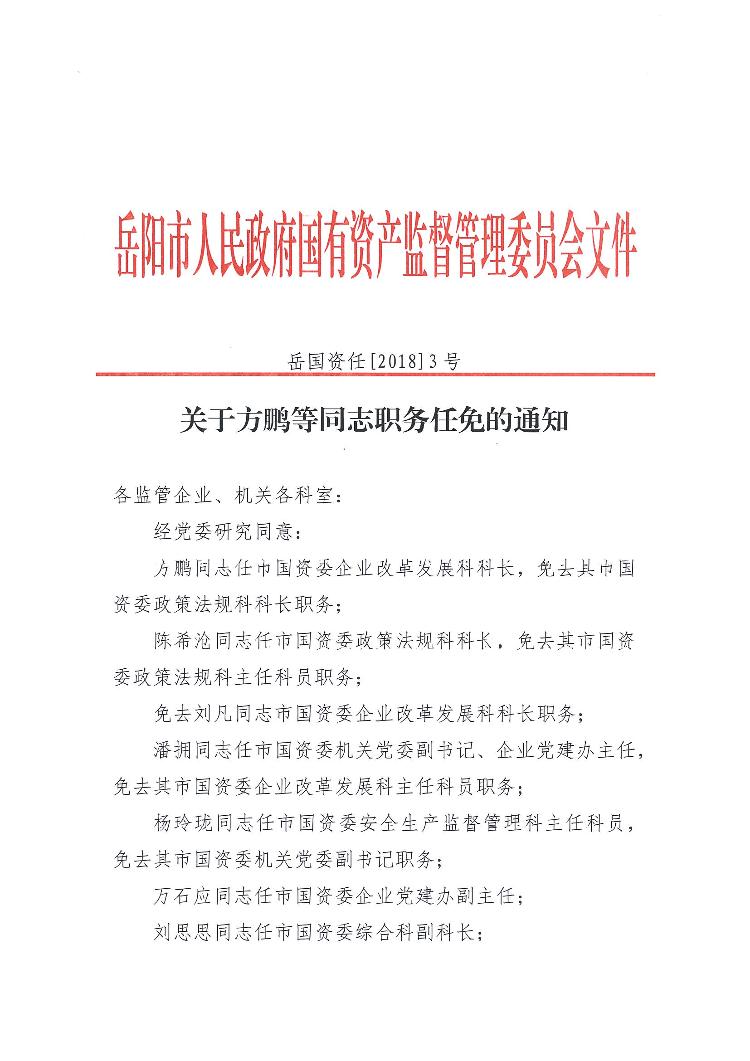 关于方鹏等同志职务任免的通知