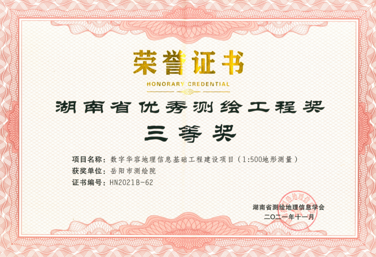 数字华容地理信息基础工程建设项目(1:500地形测量) 三等奖