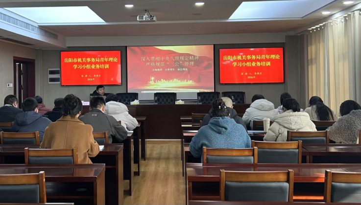 2月2日下午,岳阳市机关事务局青年理论小组开展了2026年第一期学习交流,局党组成员、副局长李燕京出席并指导,全体青年理论小组成员参会。