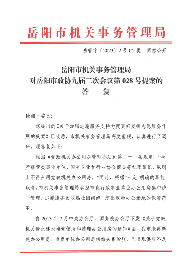 对岳阳市政协九届二次会议第028号提案的答复