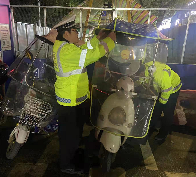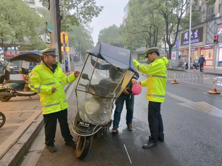 为提升摩托车、电动自行车守法率,岳阳交警对摩托车、电动自行车未登记、未悬挂号牌、超员、逆行、闯红灯、未靠右侧行驶、未按规定载物、未按规定年龄驾驶电动自行车、加装伞具、未戴头盔等重点违法行为开展整治行动。