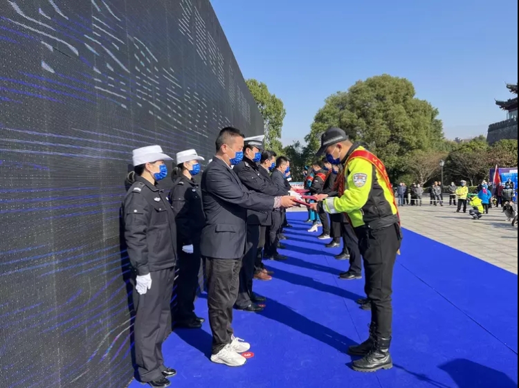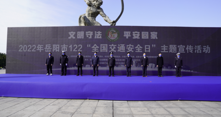 12月2日是第11个“全国交通安全日”,当天上午岳阳交警在巴陵广场启动“文明守法 平安回家”主题宣传活动。岳阳市政府副秘书长、市交通问题顽瘴痼疾整治办主任胡巍,市委宣传部常务副部长、市文明办主任戴文慧,共青团岳阳市委书记綦小广,市委网信办副主任赵泉,市教育体育局副局长陈育文,市依法治市办专职副主任张韬,市公安局交警支队支队长傅学文,省高警局岳阳支队支队长武雄辉,岳阳市保险行业协会专职副会长张韶峰等领导出席活动。