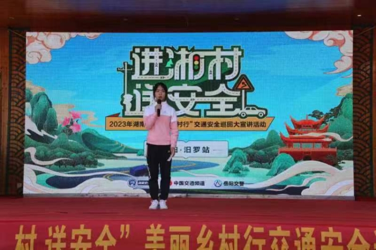 在现场,汨罗镇蟠龙桥中学生何烨以“心系安全,货许不同”为题,向大家分享自己眼中的交通安全与整个家庭之间的联系。