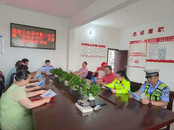 为进一步加强农村道路交通安全管理工作,提升农村地区交通参与者的交通安全意识、文明出行意识和自我保护意识,7月4日,屈原公安局交警大队宣传民辅警走进辖区凤凰乡宝塔村开展“美丽乡村行”交通安全宣传活动。
