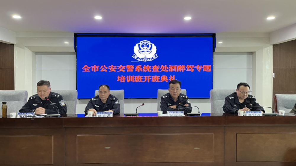 10月7日下午2点半,市交警支队举行全市公安机关查处酒醉驾行动专题培训班及查处酒醉驾警务实战比武培训班。市公安局政治部副主任孙观平,警官培训中心副主任蒋文革,交警支队党委委员、政工科科长周剑波及培训班全体学员及教学组全体人员共87人参加开班仪式。