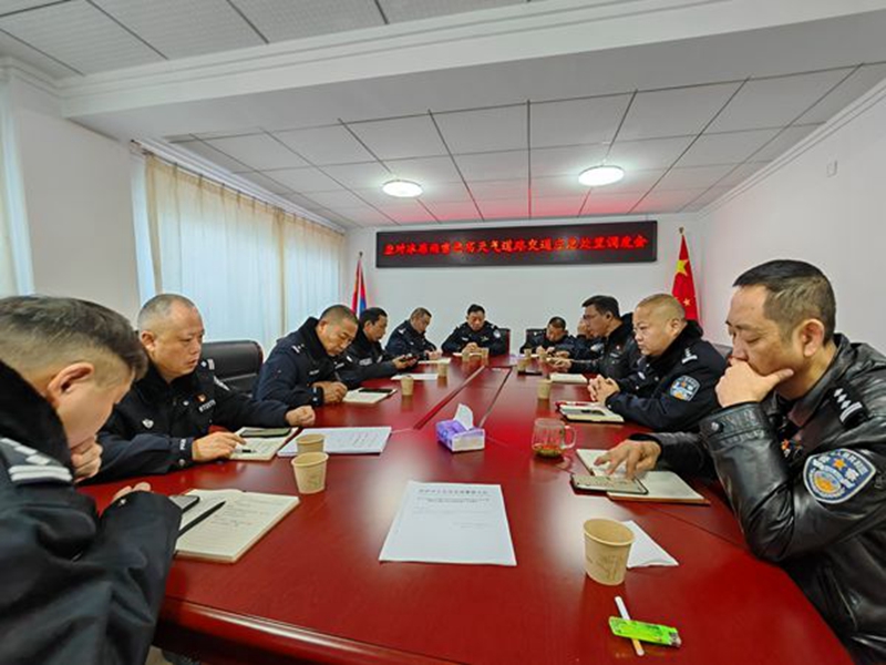 经过一夜奋战,1月22日一早,大队召开紧急会议部署应对雨雾冰冻恶劣灾害天气道路交通安全防控工作,全体大队领导全部下到分管中队辖区督查指导巡逻防控,除冰扫雪保畅工作,风雪中,到处可见交通民警指挥交通、除冰扫雪的忙碌身影。