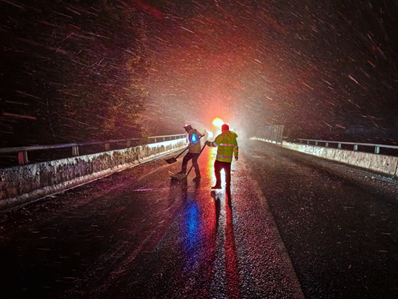 2024年1月21日晚,大雪席卷三湘大地,冰冻雨雪恶劣天气导致道路交通安全风险倍增。为确保道安路畅和人民群众出行安全,汨罗大队各中队全体民辅警闻警而动,冒雪“逆行”,顶着刺骨的寒风和扑面而来的大雪对国省道、桥梁、涵洞、急弯陡坡等重点易结冰打滑危险路段进行巡逻管控、撒盐除冰,实施临时交通管制等安全措施。
