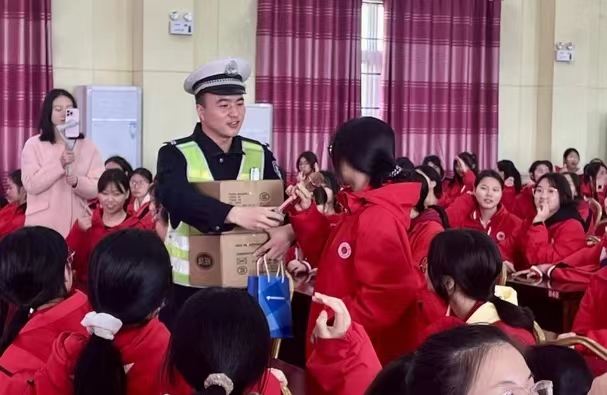 活动中,岳阳交警南湖大队民警通过播放视频案例、讲解法律法规等方式,从行走安全、乘车安全、骑车安全三个方面向在场学生宣讲交通安全知识。同学们在轻松愉快的有奖问答活动中,消化知识、活学活用,增强了交通安全意识。