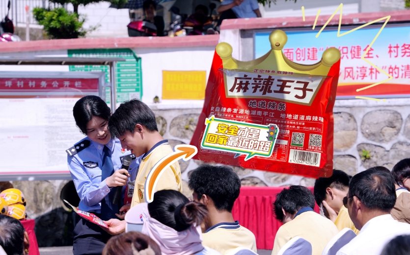此次活动,岳阳交警携手本地知名品牌麻辣王子,为现场观众精心准备了别具一格的带有交通安全标语的辣条,交通安全知识与辣条巧妙结合,为现场观众带来了一场别开生面的“交通安全文化盛宴”。
