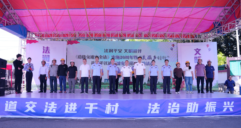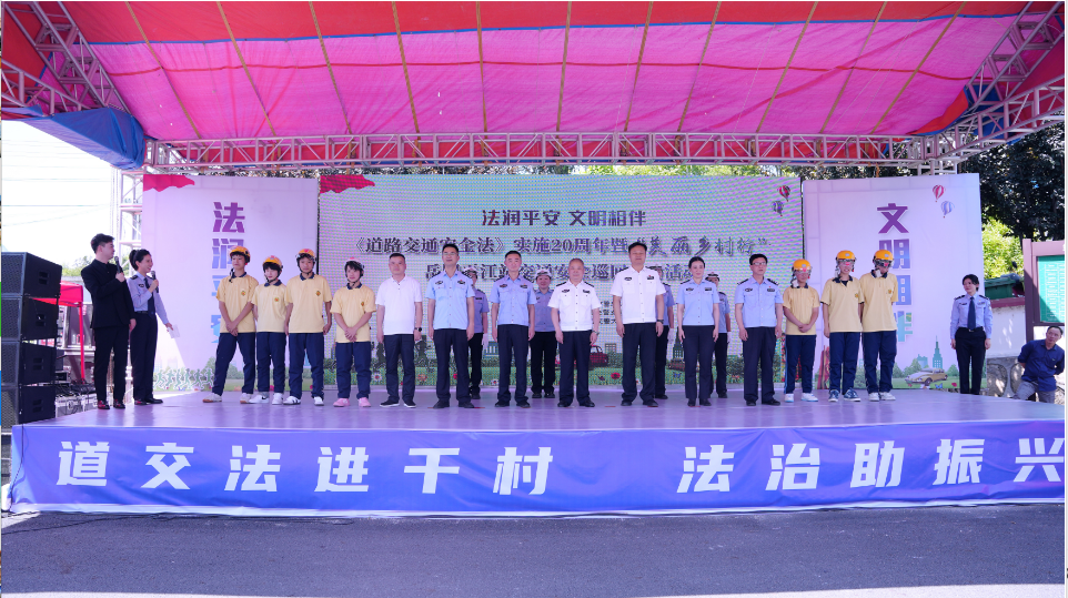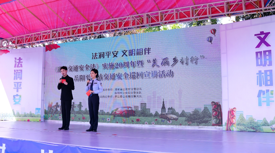 2024年5月29日,“法润平安 文明相伴”《道路交通安全法》施行20周年暨“美丽乡村行”交通安全巡回宣传系列活动,在平江县南江镇高坪村举行。省公安厅交警总队党委副书记、政委吴冰、省公安厅交警总队宣传处处长陈昊、市公安局交警支队党委书记、支队长傅学文、市公安局交警支队党委副书记、纪委书记赵红云、平江县公安局政委夏杰伦、南江镇党委书记江新华出席活动。