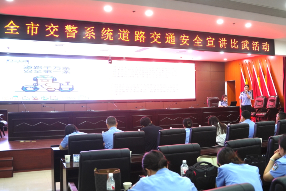 6月18日,全市交警系统道路交通安全宣讲比武活动在支队举行。支队党委副书记、纪委书记赵红云出席活动并颁奖。