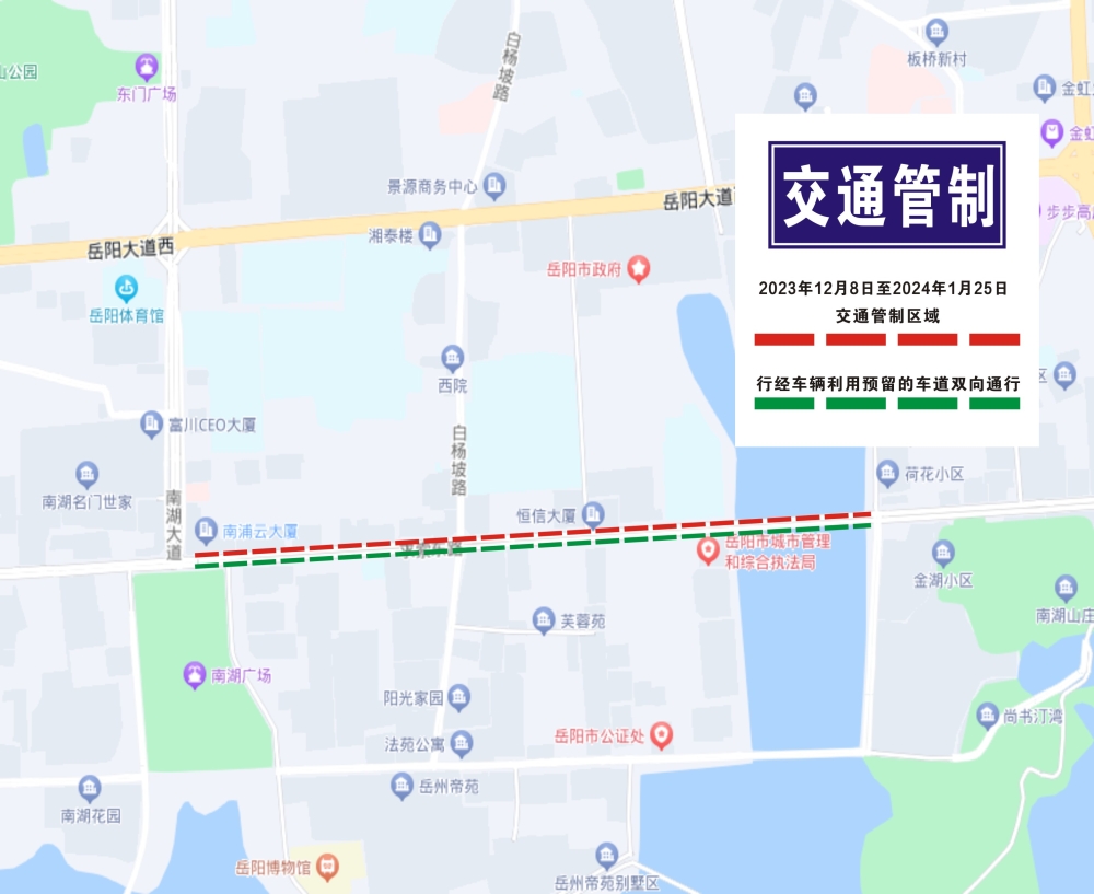 为确保雨污分流工程顺利进行和施工期间道路交通安全,依据《中华人民共和国道路交通安全法》《湖南省实施〈中华人民共和国道路交通安全法〉办法》有关规定,决定对相关路段实行交通管制。