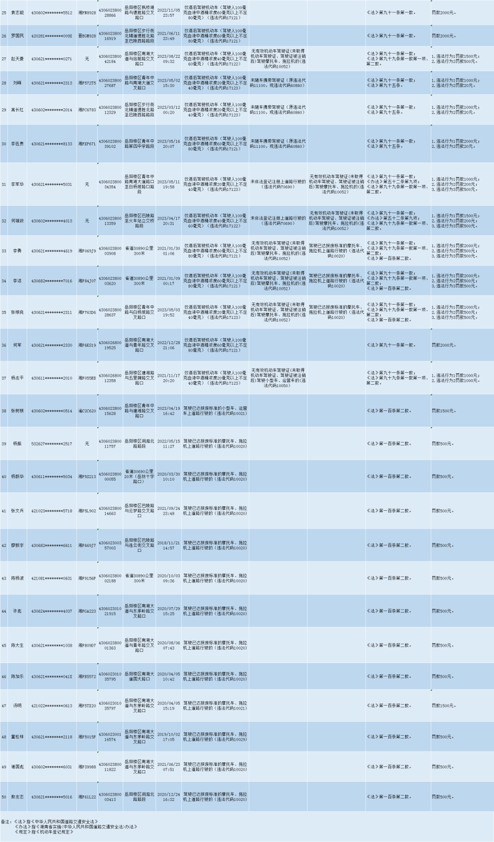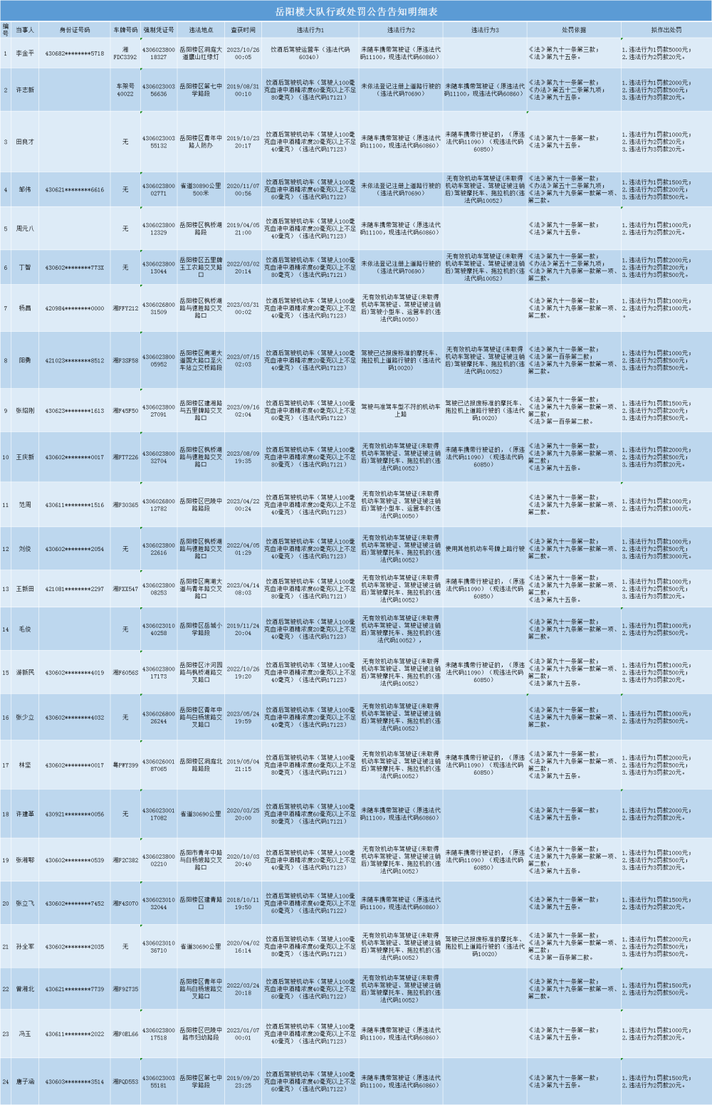 依据《中华人民共和国行政处罚法》第四十四条、《湖南省实施<中华人民共和国道路交通安全法>办法》第四十六条之规定,现依法公告告知如下: