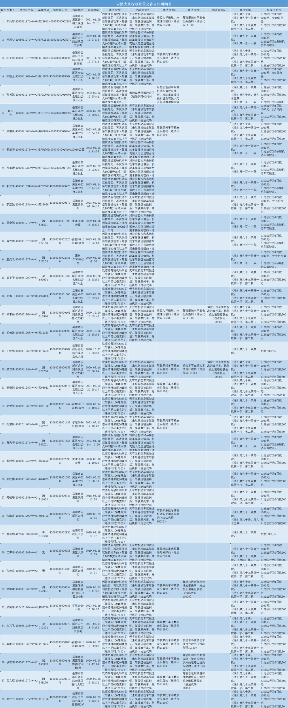 依据《中华人民共和国行政处罚法》第四十四条、《湖南省实施<中华人民共和国道路交通安全法>办法》第四十六条之规定,现依法公告告知如下:
