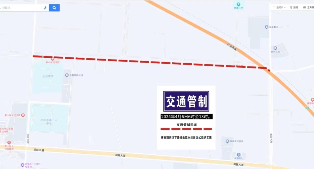 为确保2024岳阳马拉松赛事顺利举行,依据《中华人民共和国道路交通安全法》《湖南省实施〈中华人民共和国道路交通安全法〉办法》有关规定,决定对相关路段实行交通管制。