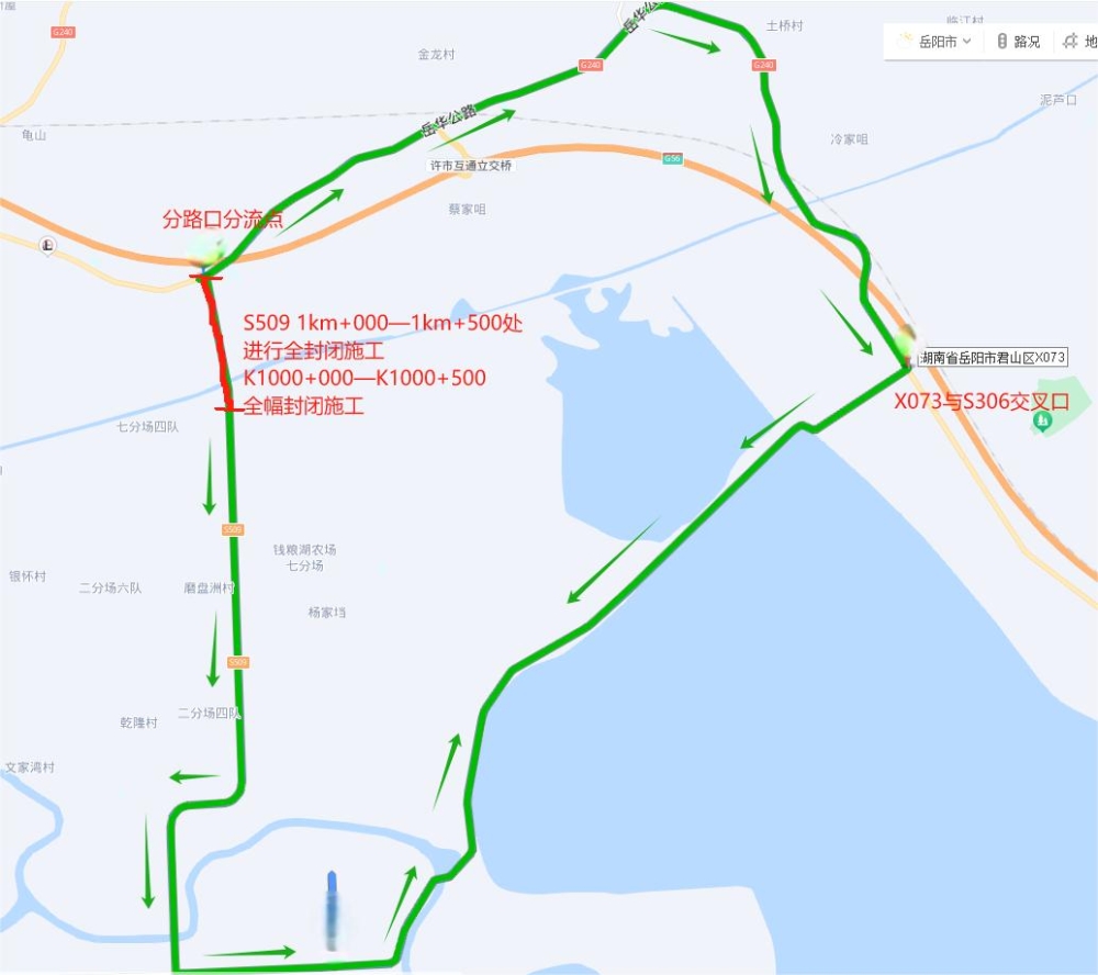 为确保钱粮湖垸(君山部分)蓄洪工程安全建设项目顺利进行和施工期间道路交通安全,依据《中华人民共和国道路交通安全法》《湖南省实施〈中华人民共和国道路交通安全法〉办法》有关规定,决定对相关路段实行交通管制。