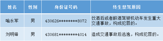 终生禁驾名单