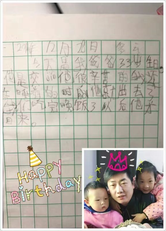 虽然易强陪伴女儿的时间比较少,但在他和妻子的悉心教育和感染下,豆豆从小就十分乖巧懂事,在她的日记本里,是这样描述爸爸的:“我爸爸是交jing,他很辛苦,我还在睡觉的时候他就出去了,我们吃完晚饭后他才能回来。”