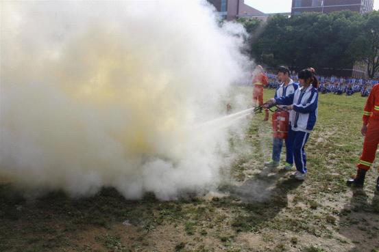 学生现场灭火演示。