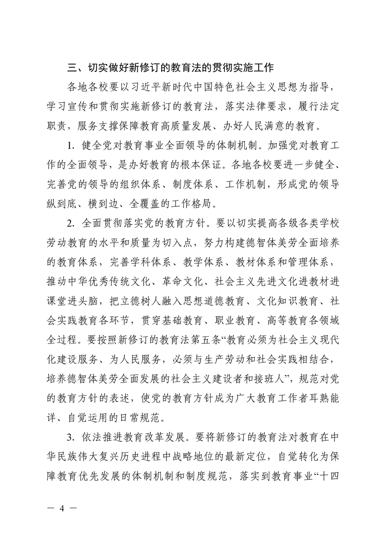转发《教育部办公厅关于学习宣传贯彻实施新修订的教育法的通知》的通知