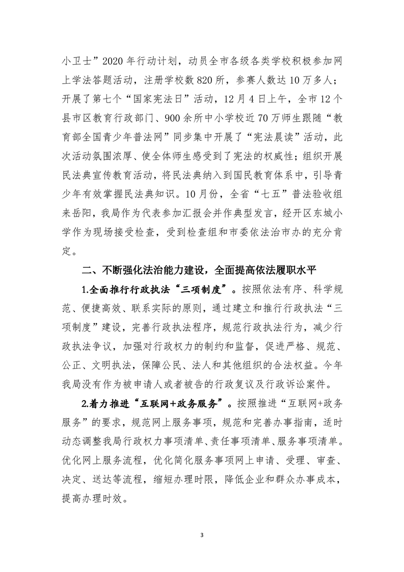 岳阳市教育体育局2020年度法治政府建设工作报告