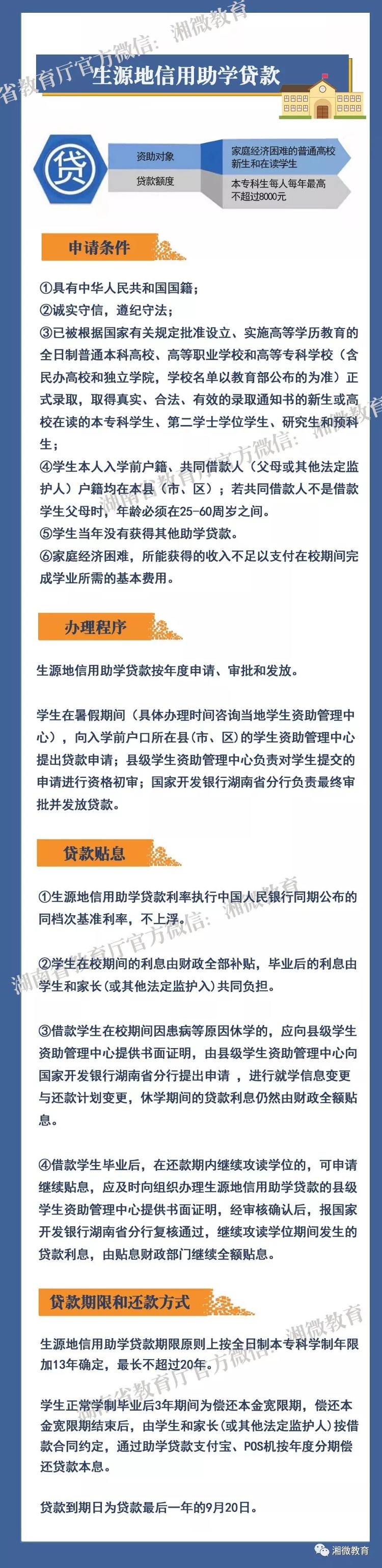 湖南的准大学生们,你是否在为学费发愁?一起随湘微教育来了解,入学前有哪些资助政策。