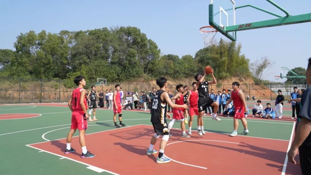 在篮球赛场,选手们巧妙运球、精妙传球、严密防守和默契配合,充分展现了向上的阳光体育精神。