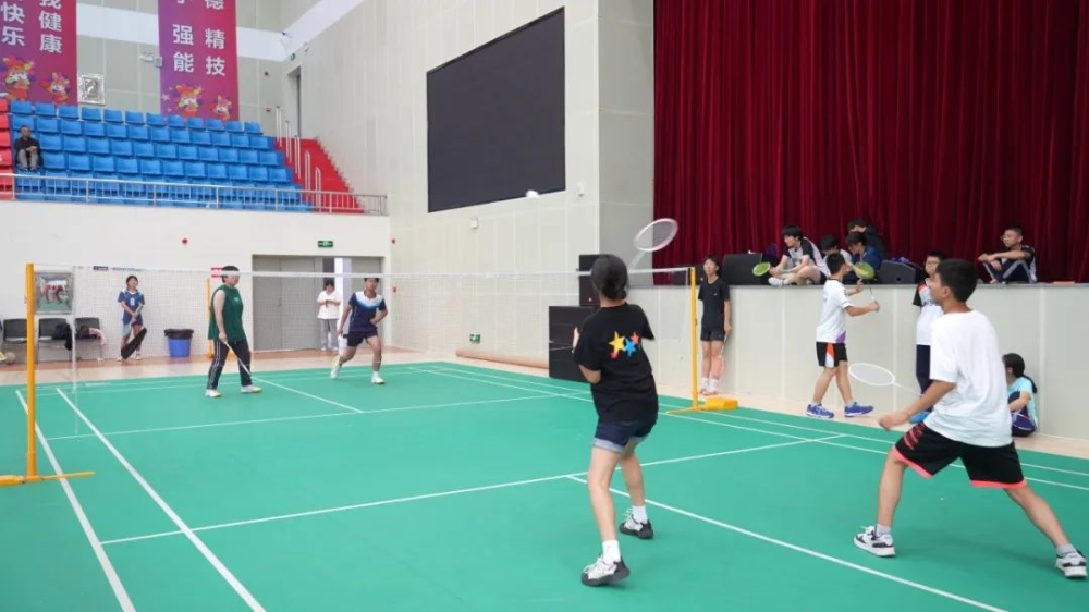 在羽毛球赛场,气氛紧张而热烈,选手们在赛场上挥洒汗水,每一次挥拍、每一次接发球都充满了竞技的激情与活力。