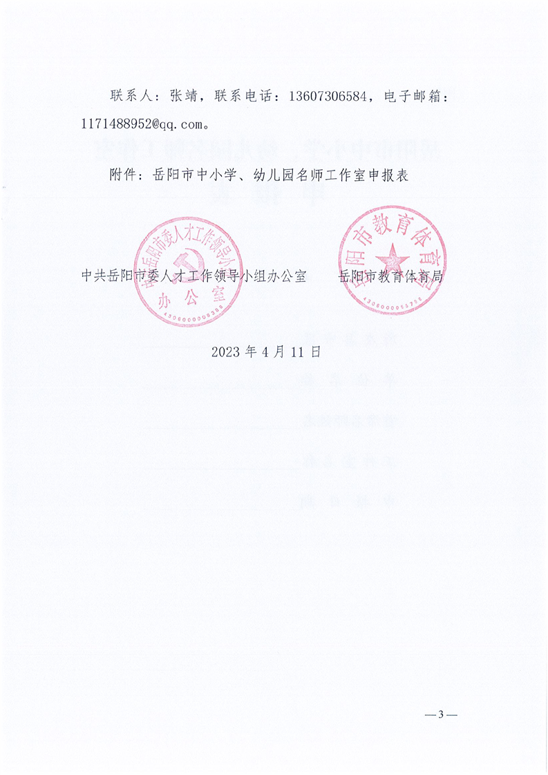 关于推荐2023年岳阳市中小学、幼儿园 名师工作室的通知
