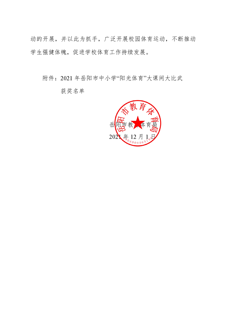 岳阳市教育体育局关于2021年岳阳市中小学“阳光体育”大课间大比武活动通报