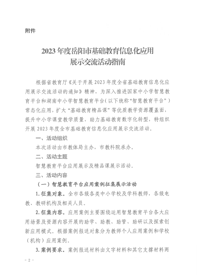 岳阳市教育体育局关于开展2023年度岳阳市基础教育信息化应用展示交流活动的通知