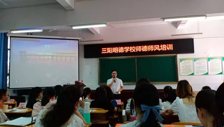 (通讯员 胡业勤)“全体成员凝心聚力,坚信:人心齐,泰山移。团队精神就是打败一切困难的力量!”8月31日,平江县三阳明德学校多媒体室不时传来阵阵掌声,该校新进教师和一年级教师正在参加教师发展中心举行的培训会。