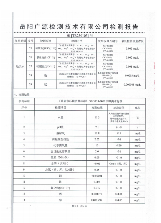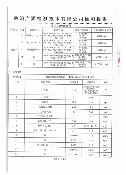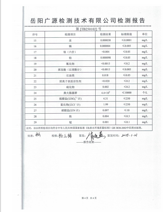 2025年1月岳阳市水务集团水源水水质检测月报表