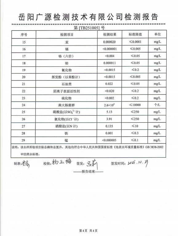 2025年10月岳阳市水务集团水源水水质检测月报表