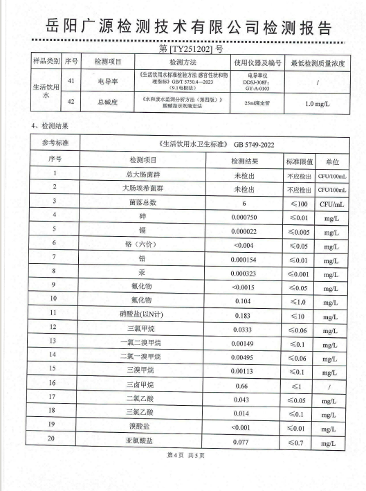 2025年12月岳阳市水务集团管网水水质检测月报表