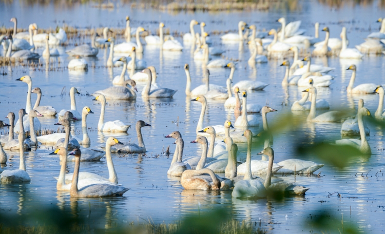 时值初冬,正是候鸟迁徙洞庭湖湿地之季。日前,在屈原管理区的古湖湿地,迎来了3000多只天鹅栖息越冬。连日来,这些天外来客让寂静的古湖变得热闹起来,引来无数人前来观赏。古湖湿地,位于屈原管理区域北岸,与湘江和汨罗江相邻,北靠洞庭湖,总面积达700亩。这里草肥叶茂,水源充足,田间河畔垂柳依依,湖边芦苇竞相摇曳, 良好的自然生态适合珍禽繁衍生息。近年来,屈原管理区坚持“生态优先、保护第一”的理念和“保护优先、科学修复、合理利用、持续发展”的原则,先后实施退耕还林、退耕还湿、渠系疏浚、自然修复等工程,多措并举开展被损小微湿地修复,大力提升全民生态保护意识,为鸟类迁徙、繁殖期提供栖息生境。这样优厚的自然环境无疑给远方来客天鹅们提供了一个天然的生息场所。据营田镇荷花村村民龙勇介绍,这些天鹅已经来了一个多星期了,每天早上7点左右它们从湖中飞来这里觅食,成批结队飞落在田间、池塘里,起舞欢歌,好不热闹。傍晚时分它们又成群结队地从这里飞向湖的远处。龙勇说他在这里生活了近40年,像这样上千数量的天鹅群飞来古湖栖息,还是第一次见到。该区林业站站长陈云辉向记者介绍,近几年,屈原管理区重视自然资源保护和湿地环境的改善,为保护好前来越冬的天鹅,该区林业、农业、公安、法院、检察等部门已联合成立了专项小组,在天鹅栖息地附近做好了警示牌,每天24小时派人巡逻,清点天鹅数量,做好登记工作。