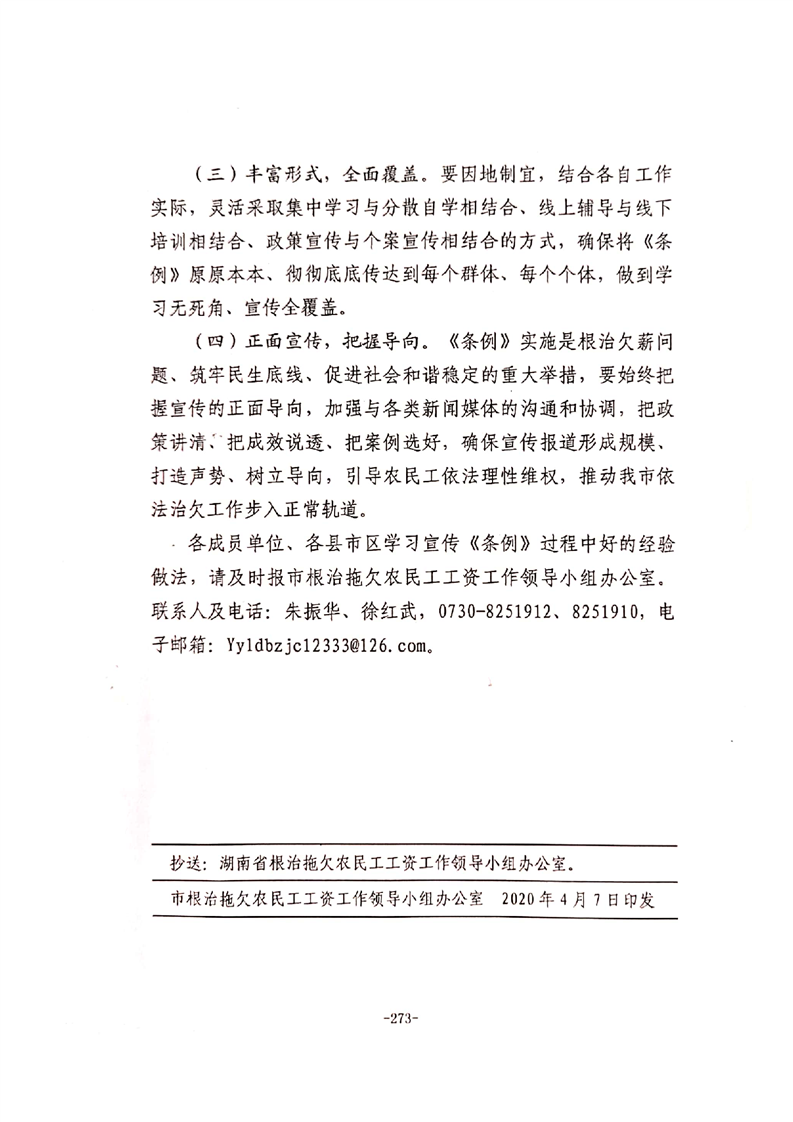 岳阳市根治拖欠农民工工资工作领导小组办公室关于印发《学习宣传保障农民工工资支付条例工作方案》的通知