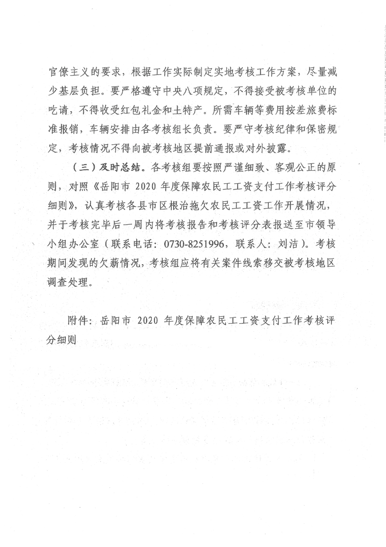 岳阳市根治拖欠农民工工资工作领导小组关于印发《岳阳市 2020年度保障农民工工资支付工作考核方案》的通知