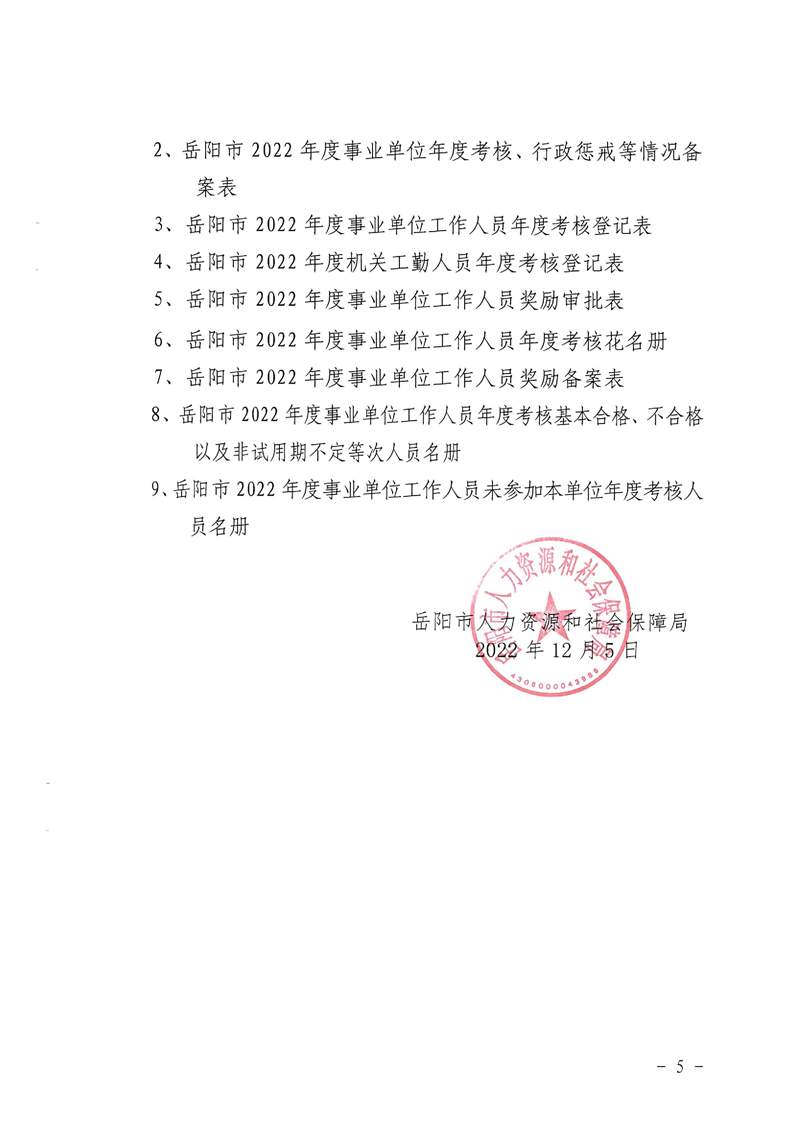岳阳市人力资源和社会保障局关于做好2022年度事业单位工作人员年度考核和奖励工作的通知